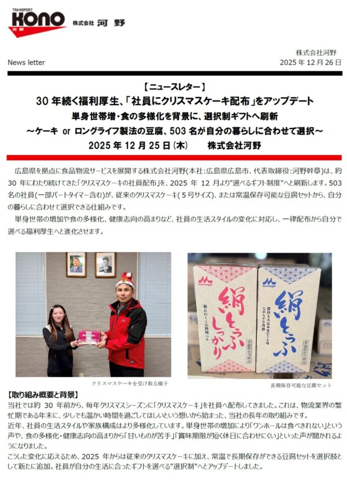 株式会社河野は、経済産業省と日本健康会議が実施する「健康経営優良法人認定制度」において、『健康優良法人2025(中小規模法人部門)』に認定されています。