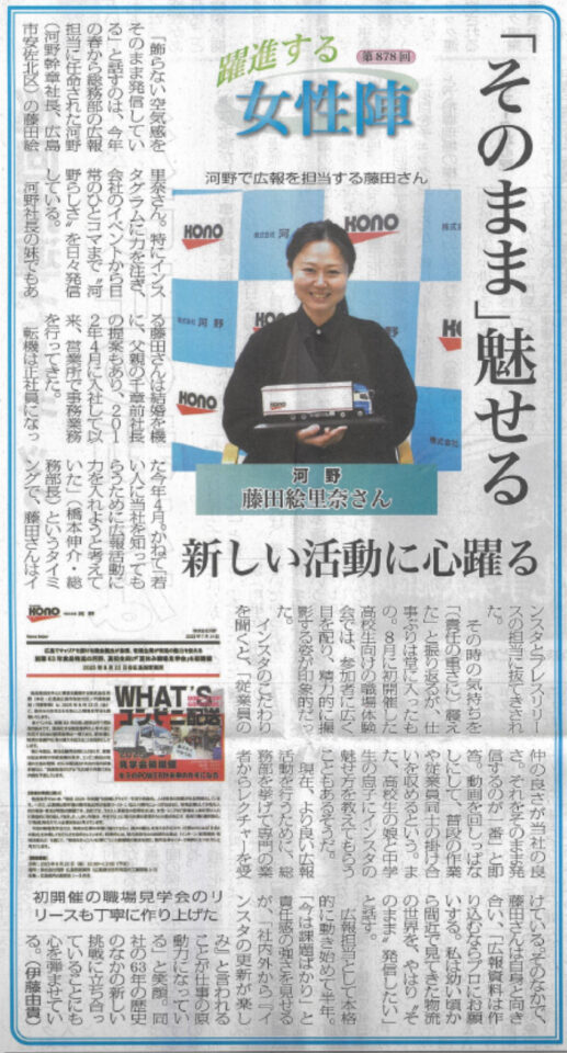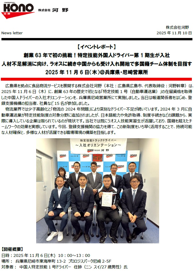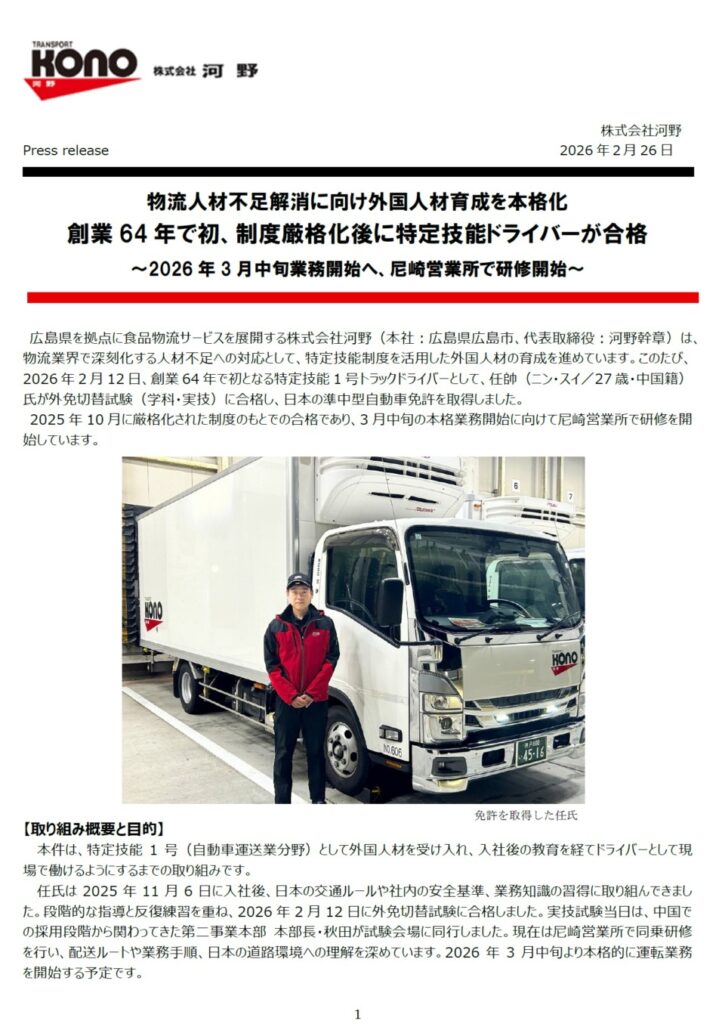 皆様、私たちは安心安全輸送の株式会社河野です。