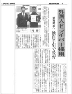 - 特定技能外国人ドライバー第1期生(任帥氏)が媒体に紹介されました!