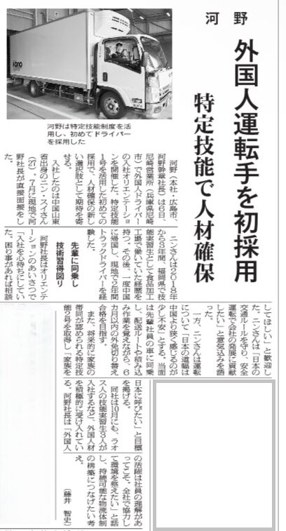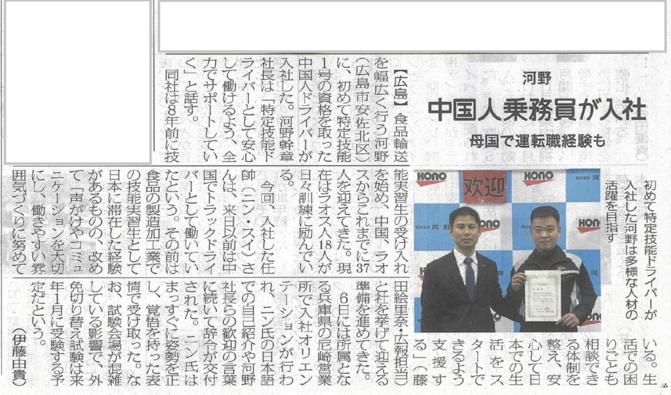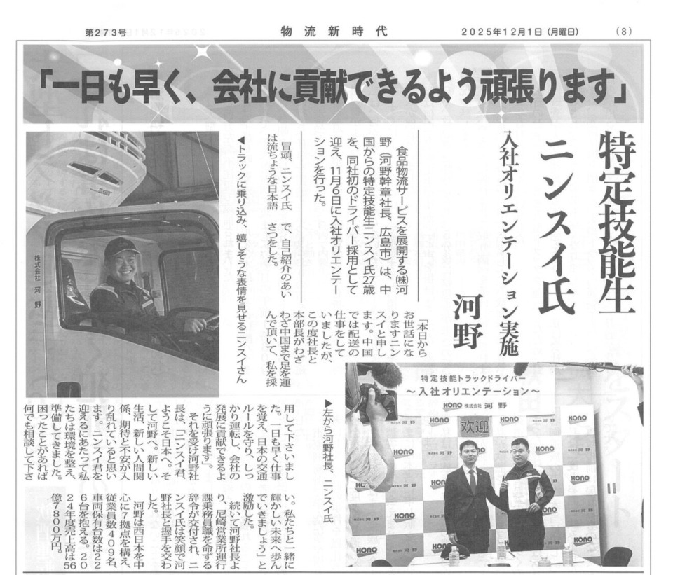 - 特定技能外国人ドライバー第1期生(任帥氏)が媒体に紹介されました!
