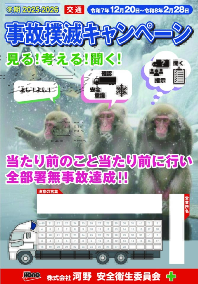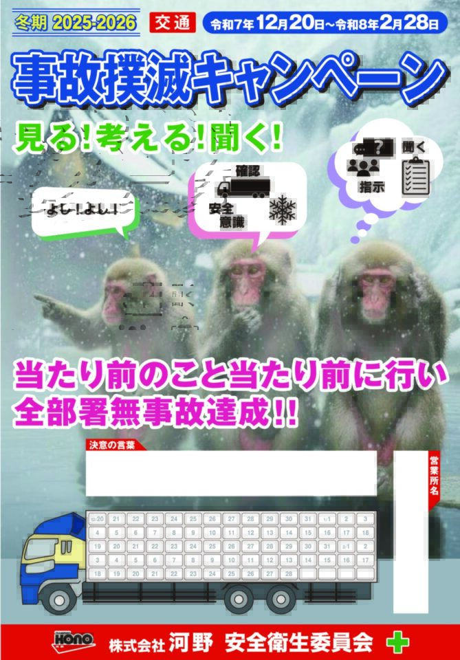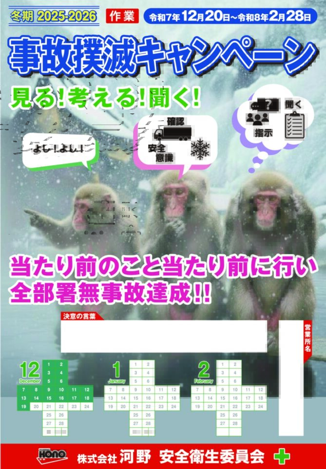 2025年度冬期交通事故・作業事故撲滅キャンペーンを実施します。